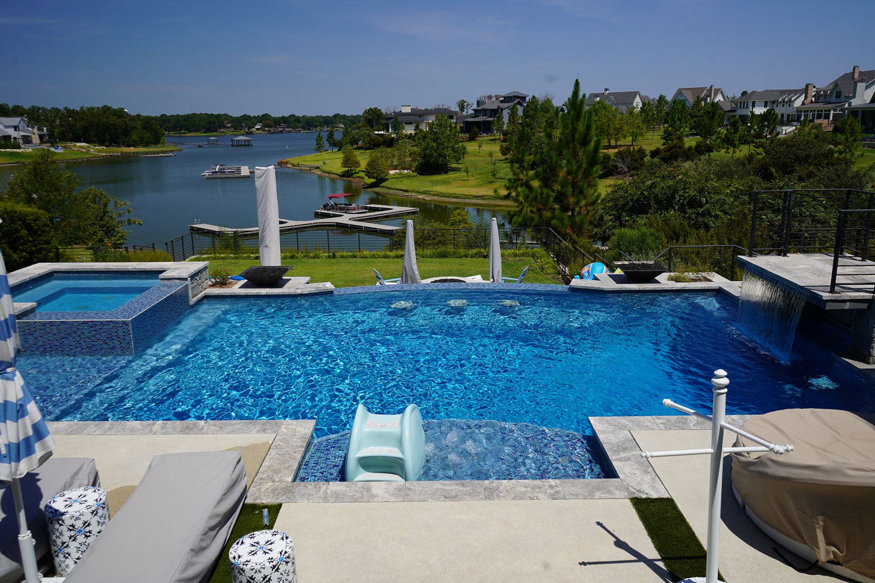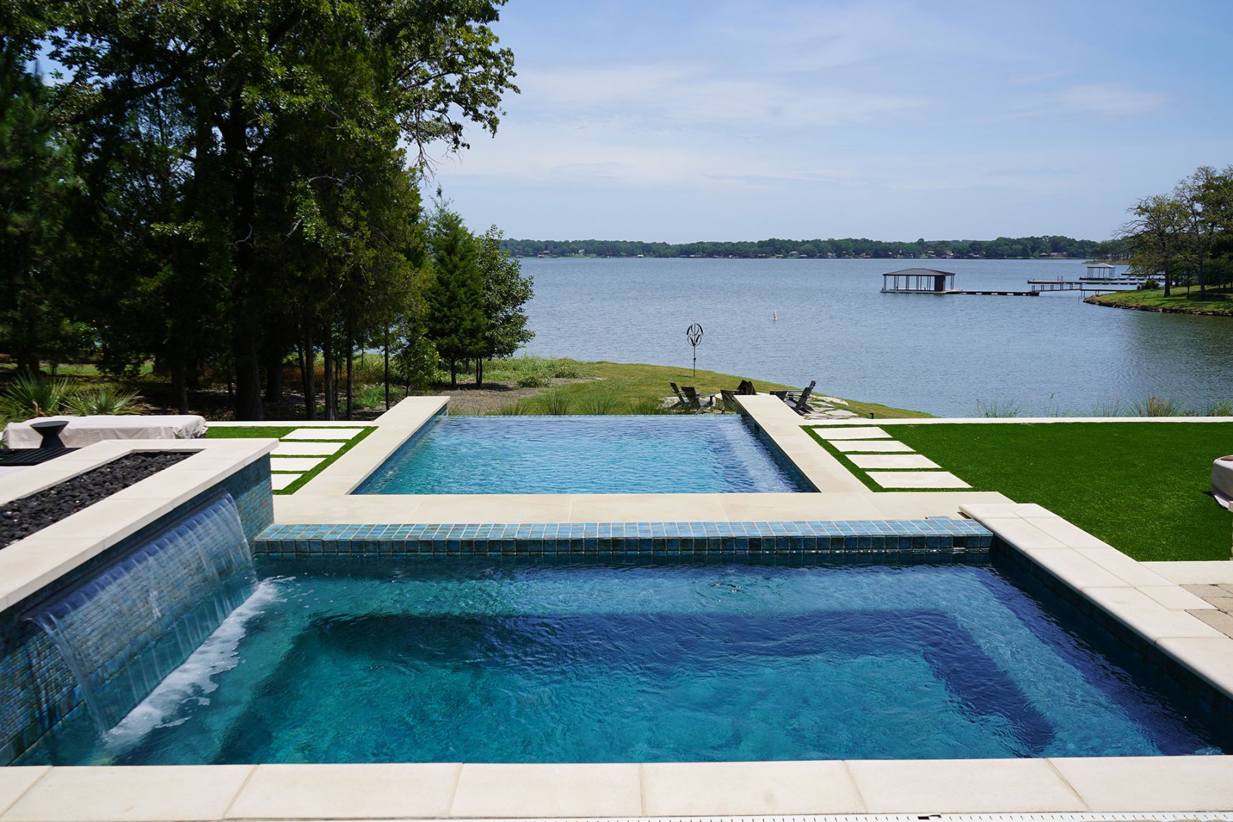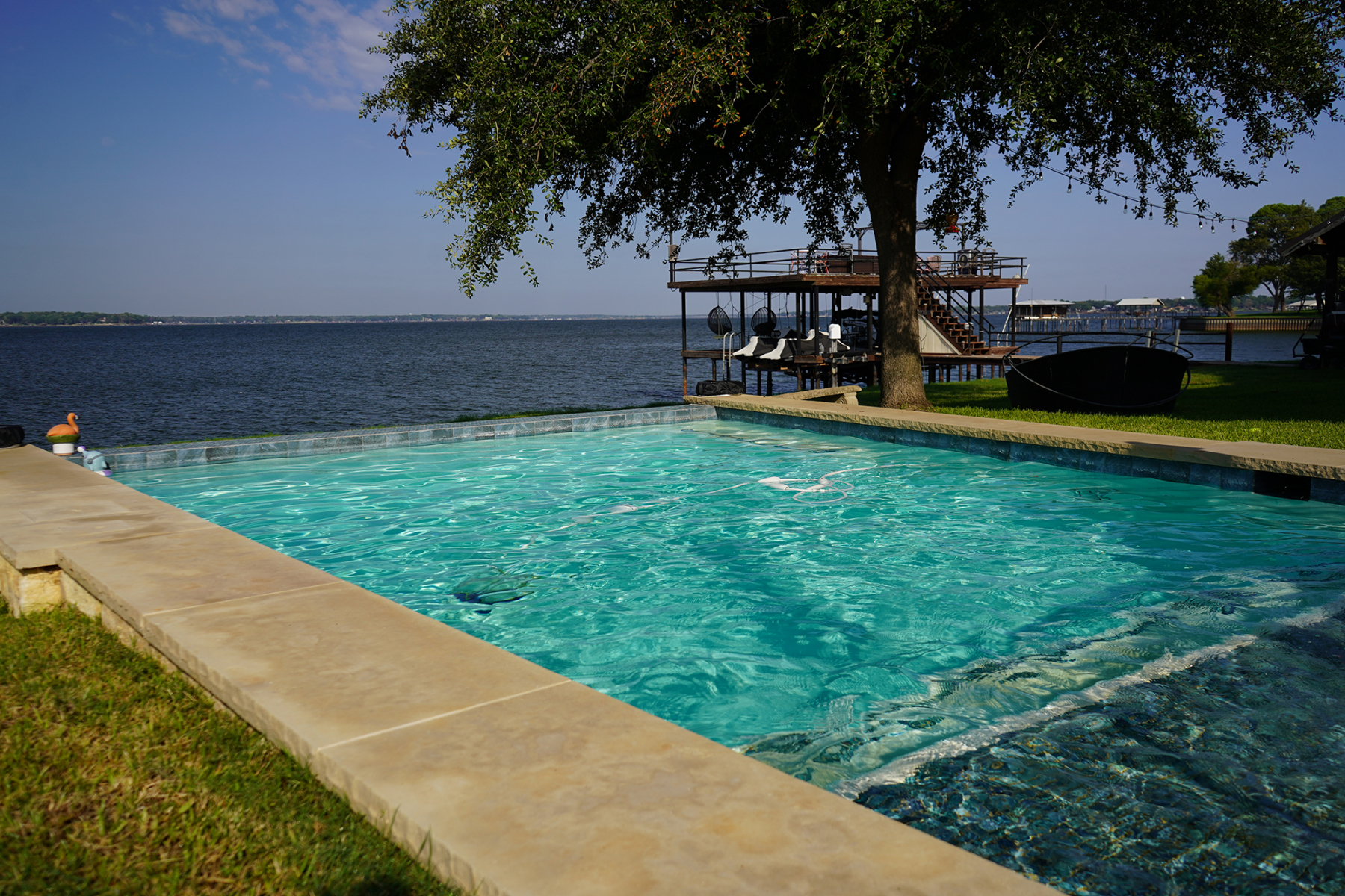 On Cedar Creek Lake, Waterline Pools installed our first project in 2012. The project included lakeside waterfalls, firepit bowls, beach entry to the lake and large rock formations. Waterline has now completed 75 pools on Cedar Creek Lake in Tool, Kemp, 505 Ranch Club, Gun Barrel City, Enchanted Oaks, Deer Island, Star Harbour, and Long Cove Malakoff.